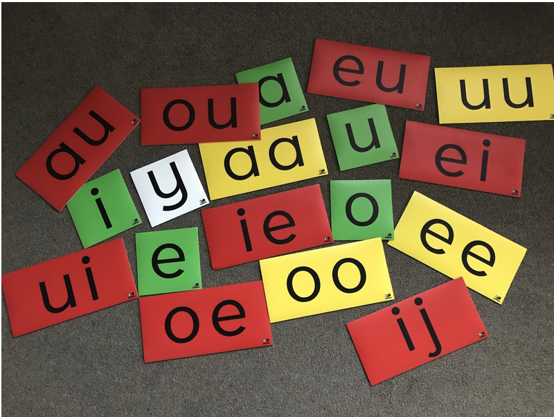 Staptegels klinkers en klanken in opbergbak €95,-